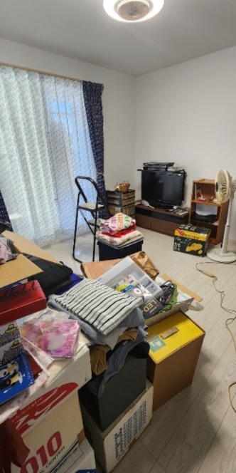 初めて伺った日、Mさんの寝室は段ボールや物でいっぱいなので、引っ越してからずっとリビングで寝ているとおっしゃっていました。
